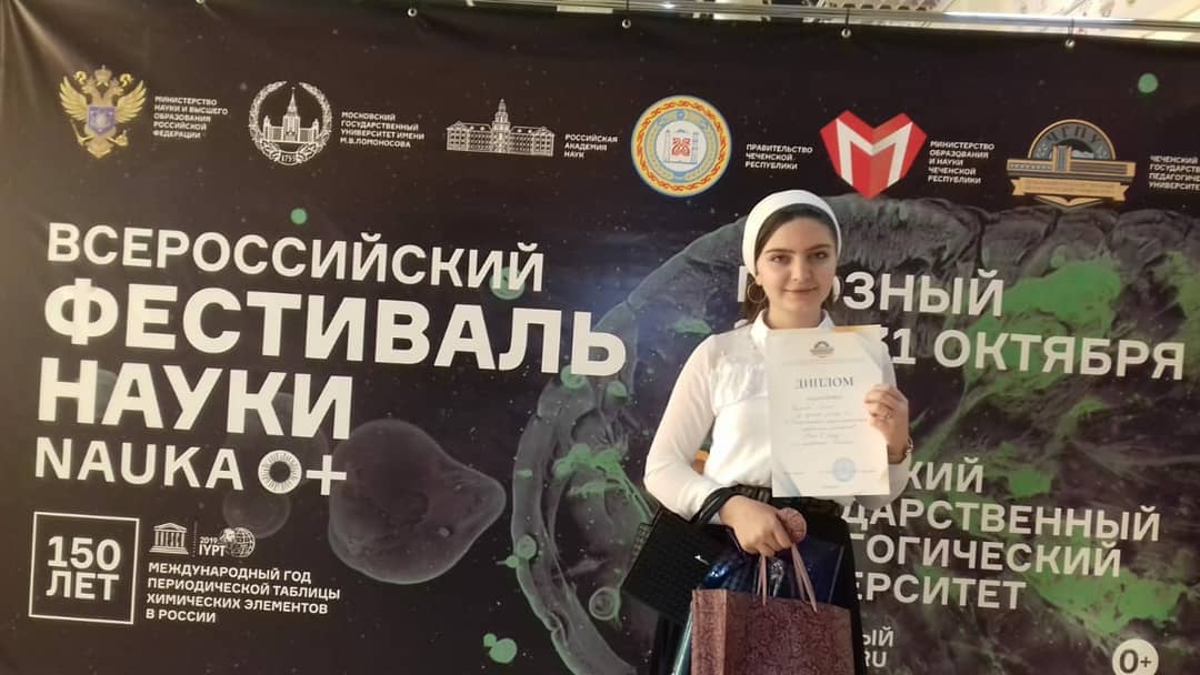 26.10.201926.10.2019г. в рамках Всероссийского фестиваля науки 2019 NAUKA 0+ в Чеченском государственном педагогическом университете прошла Межрегиональная научно-практическая конференция школьников «Мост в науку», в которой приняли участие учащиеся нашей школы. Пуцигова Раяна, ученица 10 "А" класса получила диплом за лучший доклад по направлению "Биология".