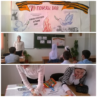 09.05.2015В целях патриотического воспитанияподрастающего поколения, социально-нравственной позиции, знакомства с героическим прошлым нашей страны на примере судеб участников реальных событий прошлых лет учащимися из патриотического клуба " Юные Кадыровцы" подготовлен стенд " 70-летие Победы ВОВ".